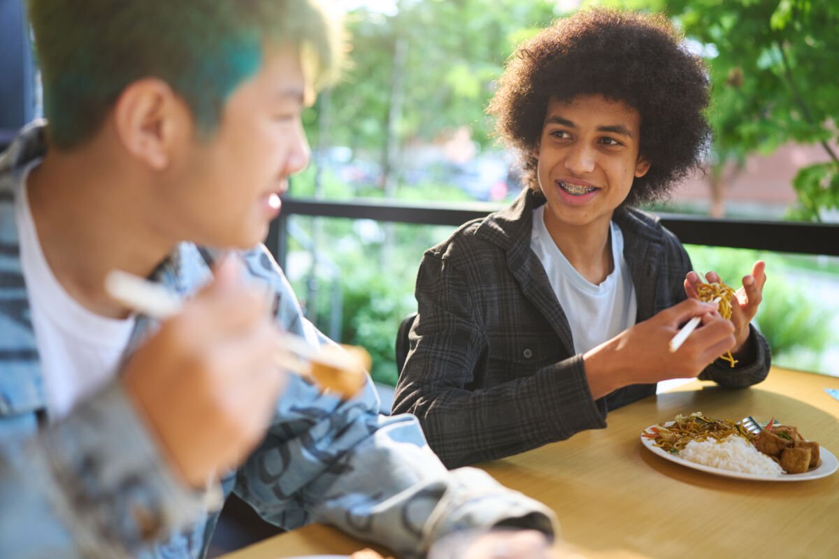 Community thrives here. Students and faculty come together daily to share lunch in a welcoming, sunlit, cell-phone-free space, fostering meaningful interactions and genuine connections.